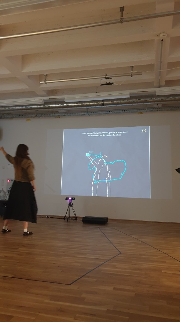 The project “Your (Self) Portrait” was inspired by an old story called ‘Butades’, or ‘Origin of Painting’. I reconstructed the roles in the story into interactive art work using kinect sensor. In this art work, users can experience audiences, models, and painters by drawing themselves with their own gestures.