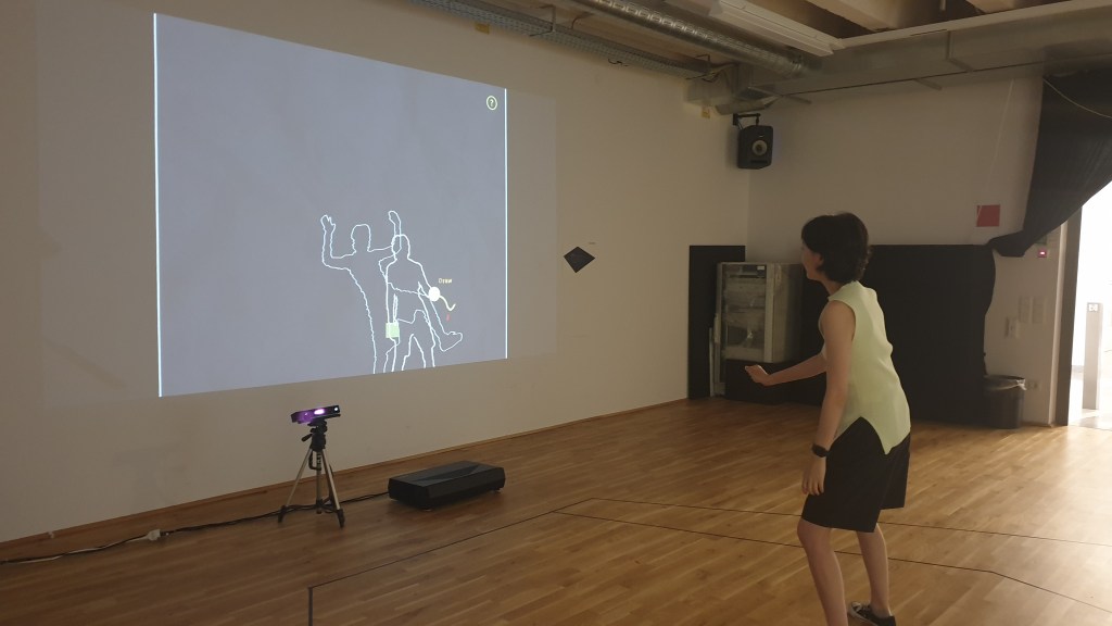 1. As the user appears in the space, a silhouette of the user appears like a shadow on the screen.