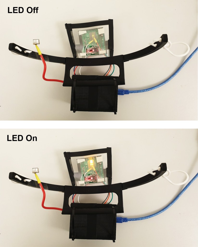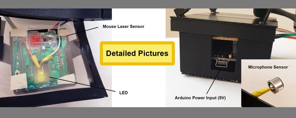 This red cable microphone sensor is for the clicking, and you can click whenever you make any sound.